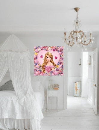 This is a digital file of a princess with a pink theme. It is a 600 dpi image file that you can print out onto poster paper yourself or take to a print shop to have printed. This is a digital file.